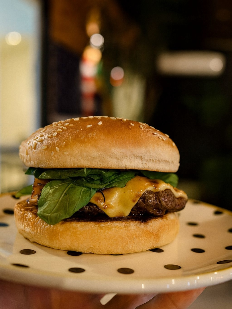 Hambúrguer suculento de 180g com creme de queijo gruyère, bacon caramelizado e rúcula fresca. O equilíbrio perfeito entre o doce e o salgado, sem perder a identidade do verdadeiro burger. Exclusiva Geleia de Alho Negro.