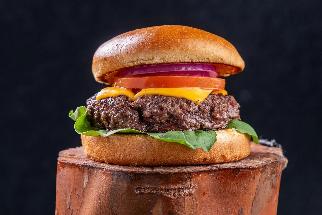 O Campeão de vendas! Costela desfiada 80g com 150g de blend bovino de carnes nobres, queijo prato derretido, molho Barbecue e alface americana.